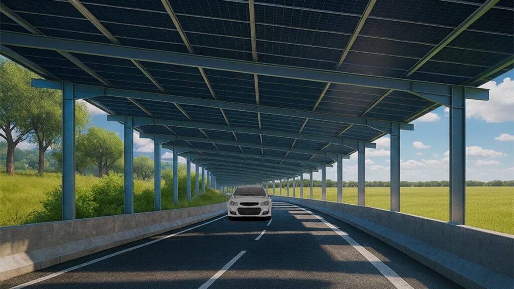 L’infrastructure sera équipée de 52 000 m² de panneaux photovoltaïques, représentant une puissance installée de 11,6 MWc. Cette installation est dimensionnée pour produire l’équivalent de la consommation électrique annuelle de 10 000 habitants, sans empiéter sur des terrains agricoles ou naturels. Le concept de « route solaire » démontre qu’il est possible de densifier les usages des infrastructures existantes ou en projet.